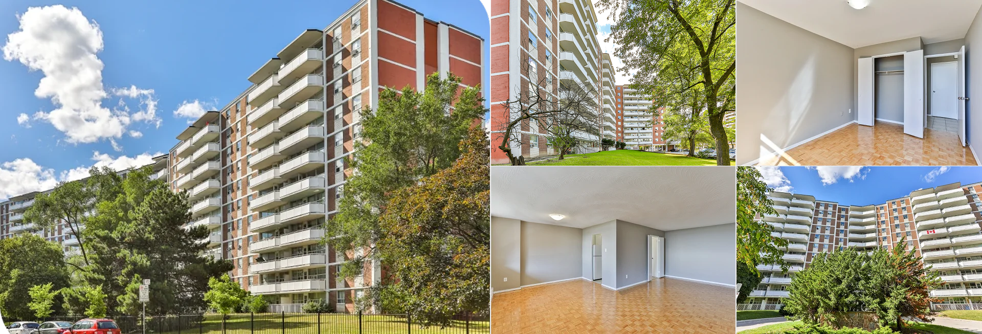 The buildings are in North York, Toronto, at the Victoria Park Avenue and Rowena Drive intersection, near many neighbourhood amenities. You will find yourself close to shopping malls, churches, the library, and public transport right outside your door on Highway 401 and DVP. We design our suites to be spacious, bright, and clean. They have plenty of storage and closet space. The new touches include freshly painted walls and refinished hardwood floors.